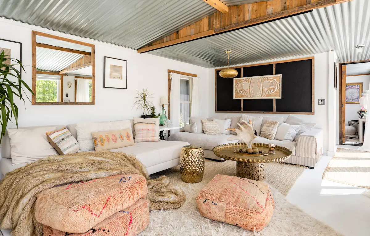 Nestled into a private road of 10 acres in the charming hamlet of Halcottsville, NY is SPACECRAFTX 1, a transformed single-wide trailer with walls of glass sliders that showcase the majesty of bordering trees x mountain vista views. SCX1 has an expansive deck that doubles the interior x is flanked by a Japanese rock garden in the front x a 60ft perennial garden of lilies, roses x peonies; an evolving color theater of time in the